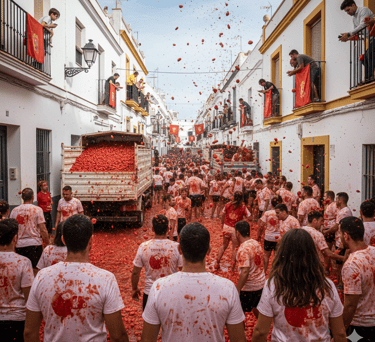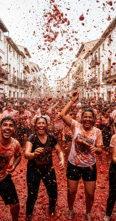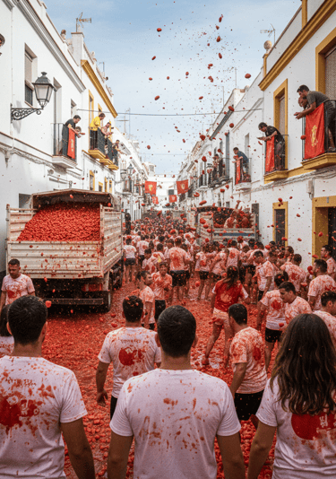 Pasinerkite į spalvų, džiaugsmo ir nevaldomos pramogos sūkurį Buñolyje (Ispanijos Valensijos provincijoje), kur vietinio gyvenimo fiesta trunka vos vieną valandą, bet įsimena ilgam. Paprasta – tūkstančiai žmonių mėto pomidorus vieni į kitus, o miestas pavirsta raudonų pastelių piešiniu! Kodėl verta vykti: istorija nuo 1945 m. – kilusi iš spontaniško jaunimo maištavimo ir pastaraisiais dešimtmečiais įgijusi tarptautinį žinomumą. Ritualai ir taisyklės: ant specialaus muilu arba kita slidžia medžiaga patepto stulpo („palo jabón“) pakabinamas kumštelis, kurį dalyviai bando pasiekti. Kai kas nors užlipa iki viršaus, duodamas signalas – prasideda tikroji pomidorų fiesta! Tada vieną valandą dalyviai aktyviai mėto pomidorus vieni į kitus, šaukia „¡Tomate!“ ir pasineria į tikrą pomidorų krušą visame mieste. Ribotas dalyvių skaičius: nuo 2013 m. fiestoje dalyvauti gali iki 22 000 žmonių Programos planas: